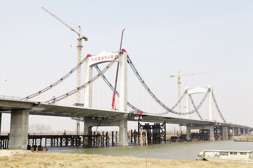 昨天上午,記者登上大慶路淮河公路橋主橋面時,熱鬧的施工現(xiàn)場與寒冷的天氣形成了鮮明的對比。大橋最南端的接線上,幾臺機器正在攤鋪最后一層瀝青。大慶路淮河公路橋建設(shè)指揮部技術(shù)質(zhì)量部部長薛峰告訴記者,橋面瀝青一天之內(nèi)就能鋪好。“瀝青是最后一道主要工序,完成后就標志大橋主體大功告成了。”